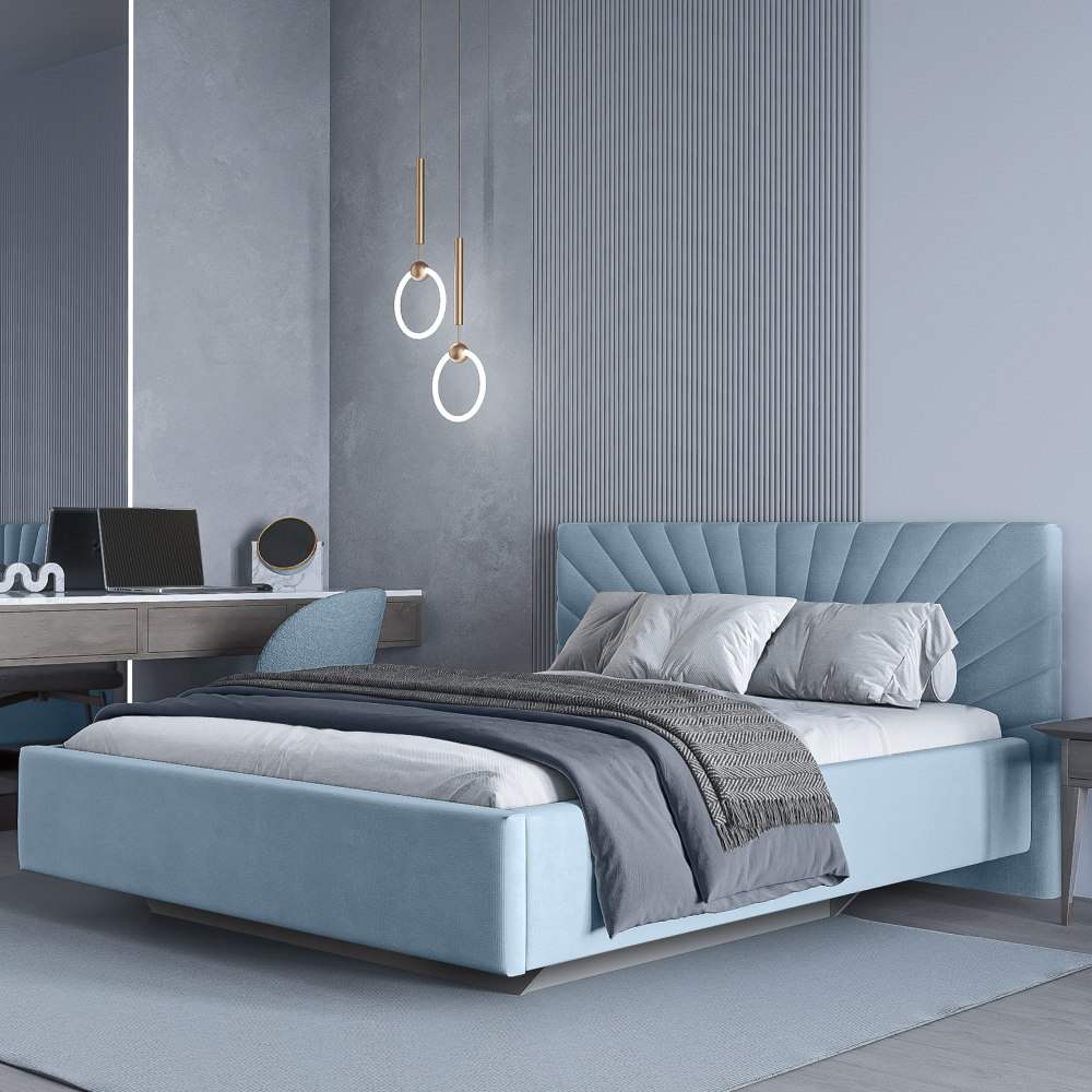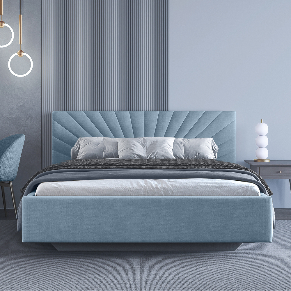 - Кровать с изголовьем в виде лучей - это интересный и оригинальный элемент дизайна интерьера.